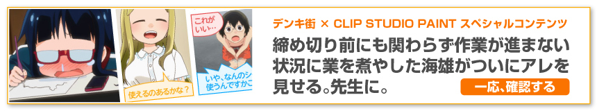 アニメ「デンキ街の本屋さん」とCLIP STUDIO PAINTのコラボ企画。キャラクターのイラストを大募集します!原作者 水あさと先生はじめ、ひおたん(高森 奈津美) や先生(津田 美波)、Gメン(小林ゆう)の各キャストも審査に参加。グランプリの方の作品は「デンキ街の本屋さんBlu-ray」ブックレットに掲載されるほか、各賞受賞者には水先生サイン色紙をはじめ豪華賞品をプレゼント。コミケ前で忙しいところすみませんが、たくさんのご応募お待ちしています!