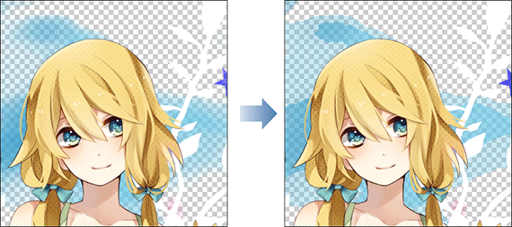 自由変形特有のノイズやボケを発生させずに、元の画質に近い状態で変形することが出来ます。線画のレイヤーなど、透明の画像にも適用することが出来ます。