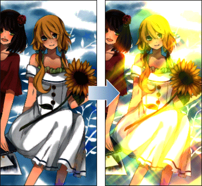 ラスターレイヤー上の指定した色の類似色に対し、色彩・彩度・明度を一括変更します。「グロー」(開発者:Koizumiさん)