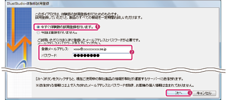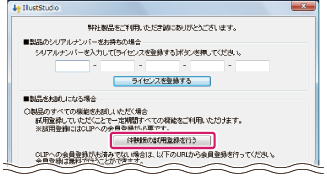 アップデート完了後、IllustStudioを起動し、画面の案内にそって体験版の試用登録を行ってください。