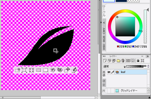 あるいは「レイヤ」→「レイヤから選択範囲」→「選択範囲の作成」などで範囲指定を行います。
