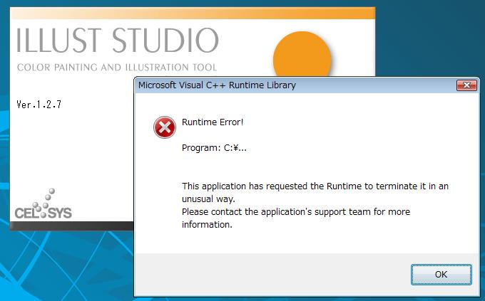 先ほど、IllustStudioで↓のようなエラーが発生しました。