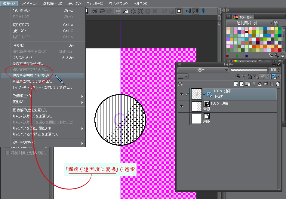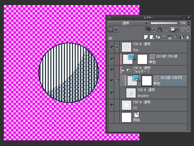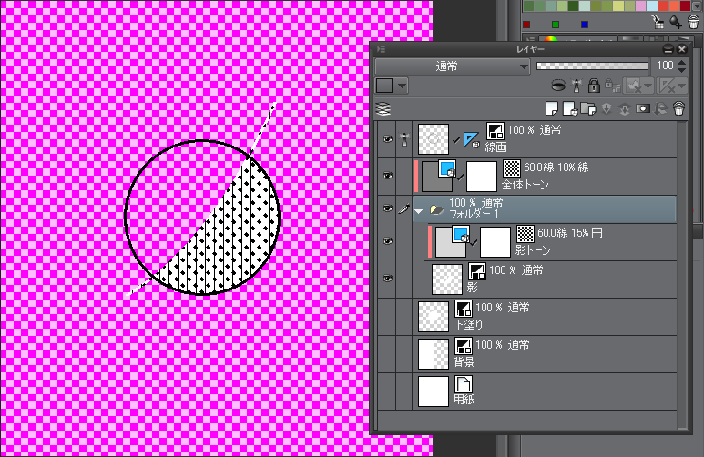 クリックすると、選択範囲を取得できるので、その状態で陰影レイヤーを選択して、