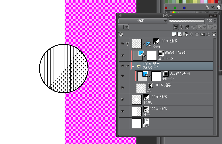 網点位置をずらし、不要な部分は透明色でペンツールなどで消すという