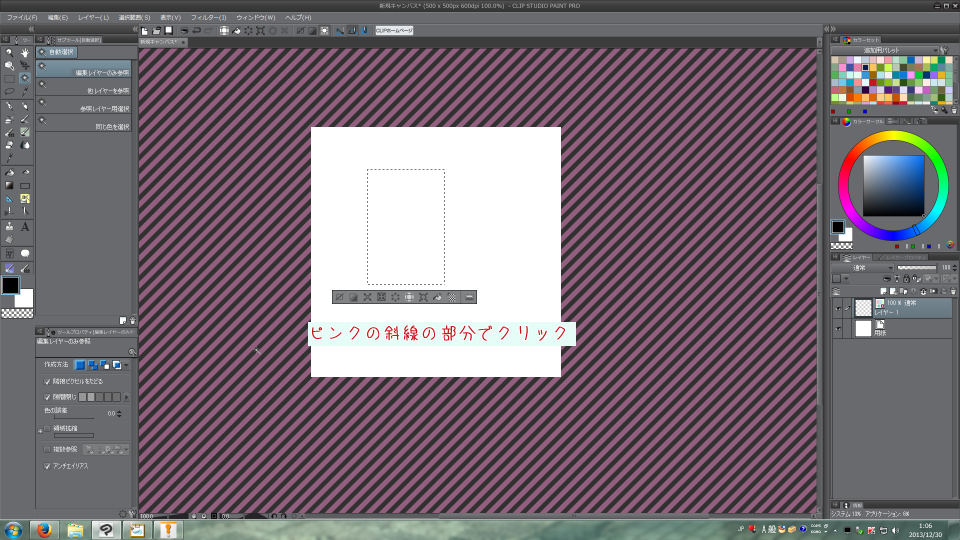1.まずサブツールパレットから「自動選択(編集レイヤのみ参照)」などを選択しておきます。
