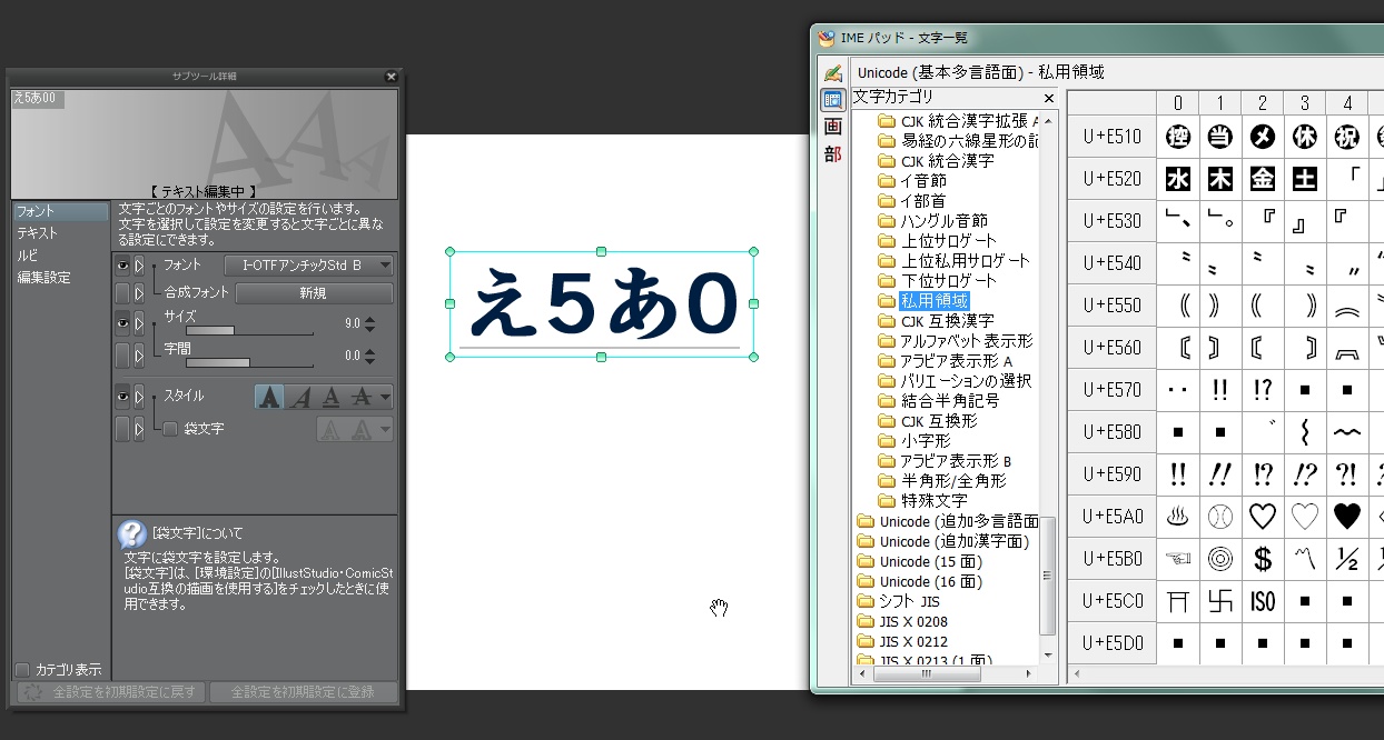 ・テキスト入力時の[ツールプロパティ]パレットのスクリーンショット