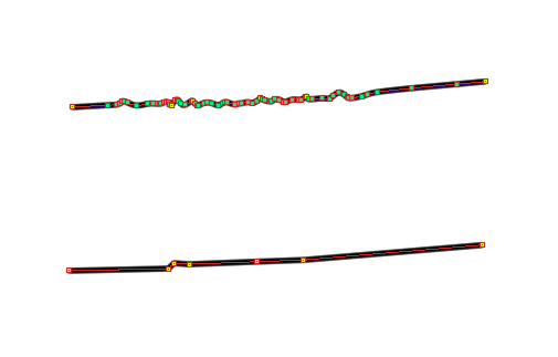 ベクターレイヤーに何本か描画して頂き、単純化を行った数値等を