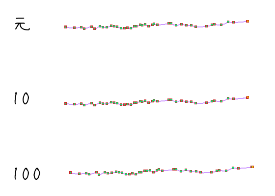 できるだけ線の形が変わらないよう、制御点の数を増やす必要があるため、
