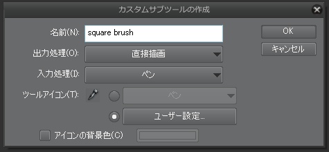 「カスタムサブツールの作成」を選択、「カスタムサブツールの作成」ダイアログが表示されますので