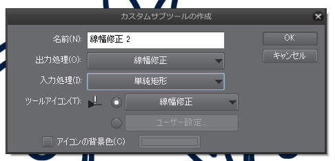 「カスタムサブツールの作成」で「入力処理」を「単純矩形」に変更した