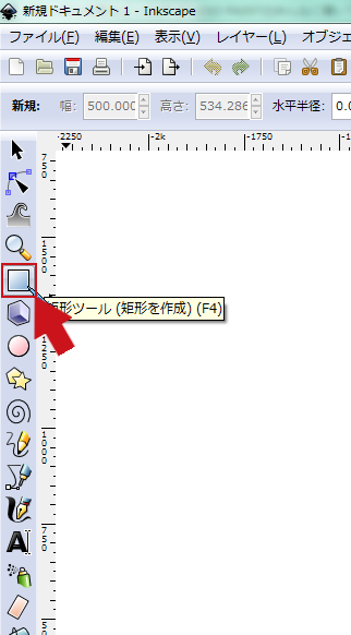 1.まずInkscapeを立ち上げ、「矩形」ツールを選択します。