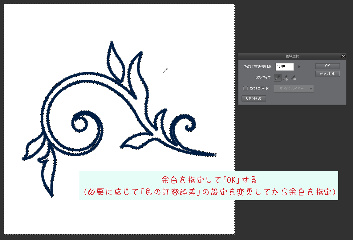 5.[選択範囲をフチ取り]ウィンドウが表示されますので任意に設定を行い[OK]をクリックします。