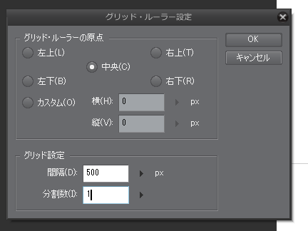 (このときグリッド・ルーラーの原点を「中央」に設定してください)