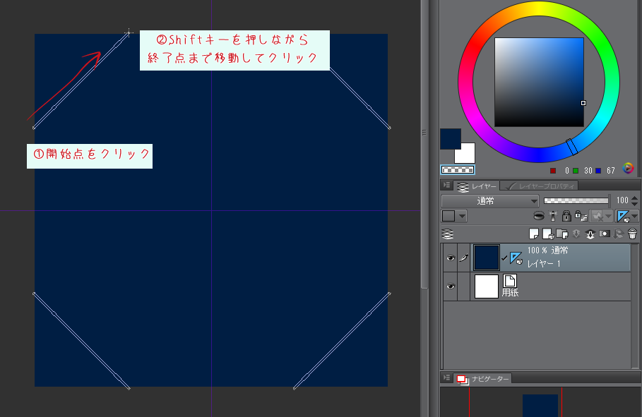 (このとき表示倍率を最高の3200%にしておくと確実です)