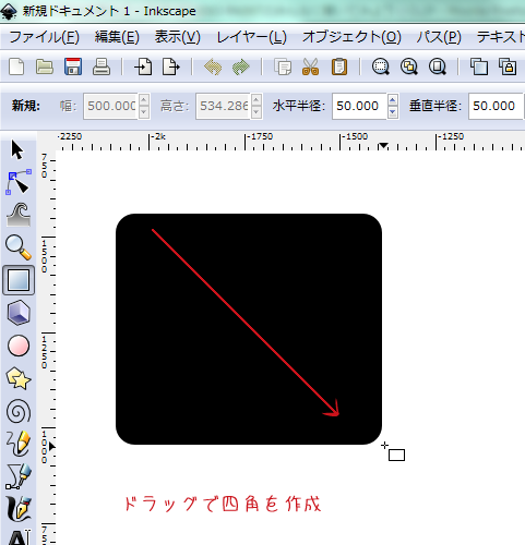 3.半径を設定できたら、あとはキャンバス上でドラッグして普通に四角を作成するだけです(笑)