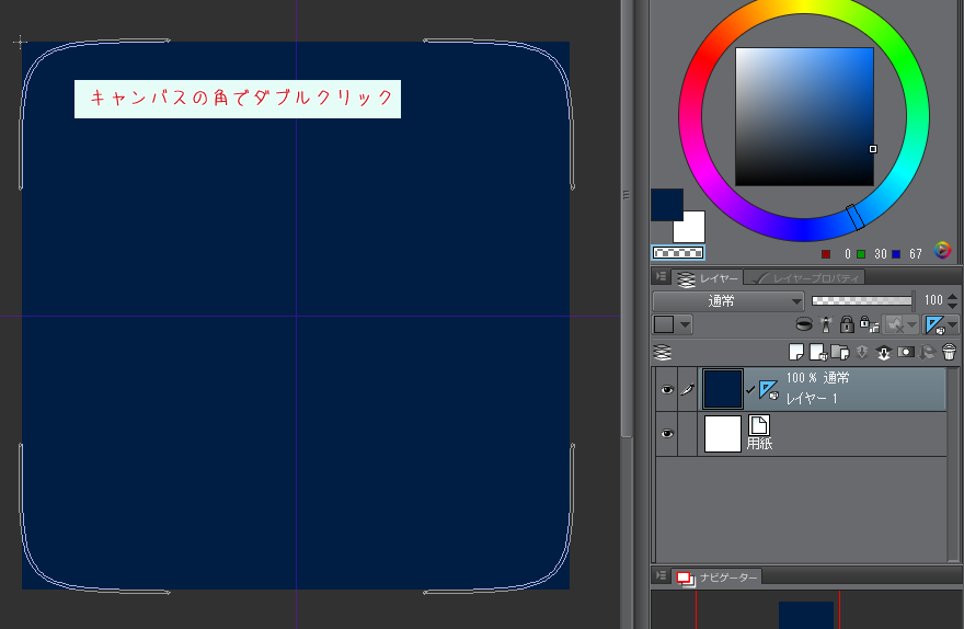 7.あとは四隅を透明色で塗りつぶせば完了です。