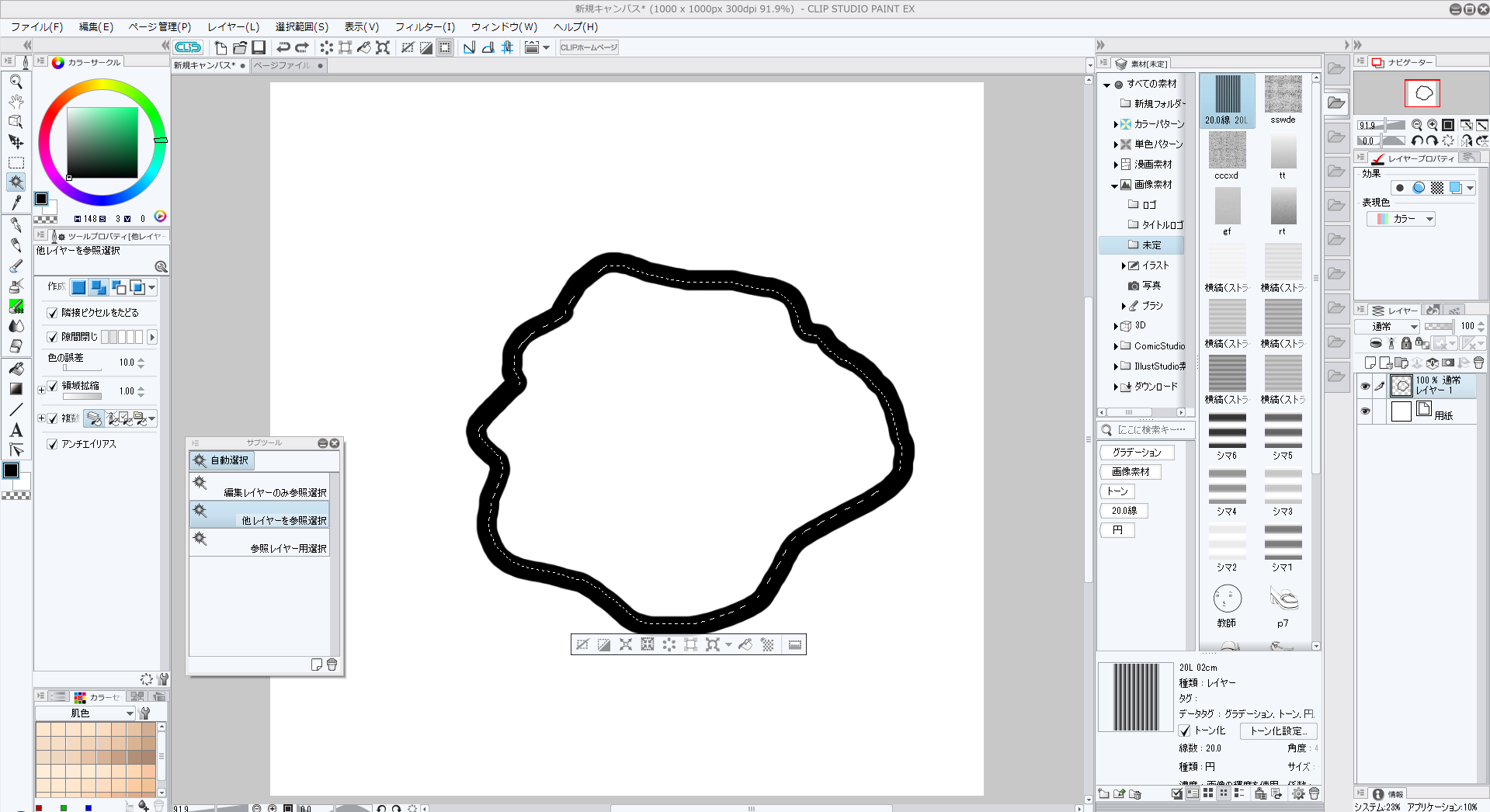 クリスタに入っていないトーン素材をコミスタの新規ページに貼りつけコミスタページファイルとして保存しそのままクリスタに読み込んで画像を素材として登録をします。 ![]() そこで気になったことなんですがクリスタで新規などを作成しコミスタから移行し登録したトーンを貼るときの挙動なんですが キャンバスに選択範囲を作ってそこにコミスタから移行したトーンを貼ると選択範囲を無視してキャンバス全体に貼られます。 ![]() ![]() やはり、CLIP STUDIOを介してコンバートしたもので無いと選択範囲内にトーンを貼ることは出来ないのでしょうかね? ------------------------------------------------------------ ■バージョン:1.3.6 ※[ヘルプ]メニュー → [バージョン情報]で確認できます。 ■グレード DEBUT( ) PRO( ) EX(○ ) ■OS Windows XP( ) Windows Vista( ) Windows 7 ( ○ ) Windows 8( ) Windows 8.1( ) MacOS X 10.5( ) MacOS X 10.6( ) MacOS X 10.7( ) MacOS X 10.8( ) MacOS X 10.9( ) その他( ) ------------------------------------------------------------ |