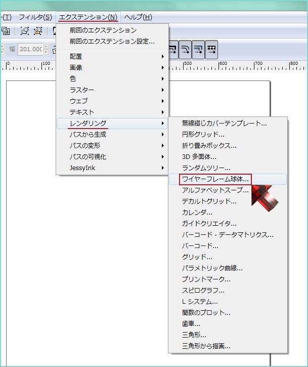 「エクステンション」→「レンダリング」→「ワイヤーフレーム球体」を選択します。