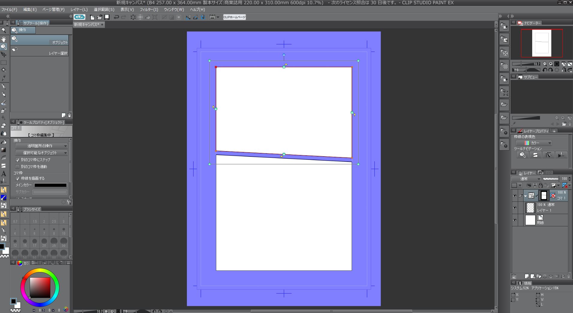 コマ枠の連動を切った状態で、複数の枠線を同時に選択して動かしたいのですが、可能でしょうか。 要するにコミスタの枠線定規機能で可能だったような操作をしたいのです。 「別のコマ枠を連動」機能をオンにすると、なるほど複数のコマ枠が同時に動きますが、見開き状態で作業していると隣のページの枠線まで連動して動いてしまい、正直まったく使い物になりません。 ------------------------------------------------------------ ■バージョン: ※[ヘルプ]メニュー → [バージョン情報]で確認できます。 ■グレード DEBUT( ) PRO( ) EX( ) ■OS Windows XP( ) Windows Vista( ) Windows 7 ( ) Windows 8( ) Windows 8.1( ) MacOS X 10.5( ) MacOS X 10.6( ) MacOS X 10.7( ) MacOS X 10.8( ) MacOS X 10.9( ) MacOS X 10.10( ) その他( ) ------------------------------------------------------------ |