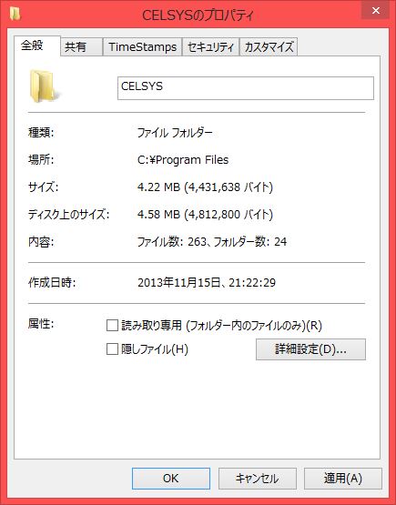 インストールフォルダの「読み取り専用」を解除しました。 ハードディスクエラーも疑い、「chkdsk /r /f」も実行させましたが、改善しませんでした。 この状況で、他に何か問題点は思いつきませんでしょうか。 ------------------------------------------------------------ ■バージョン: ※[ヘルプ]メニュー → [バージョン情報]で確認できます。