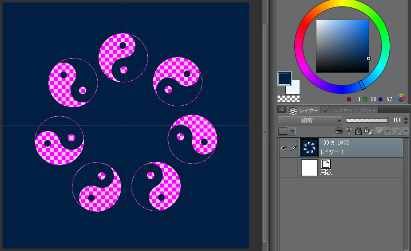 この透明色が選択された状態で描画すると