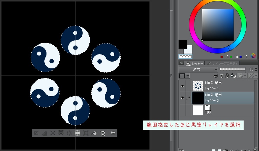 (範囲指定したあと黒塗りレイヤを選択する際に範囲指定を解除しないようご注意を)