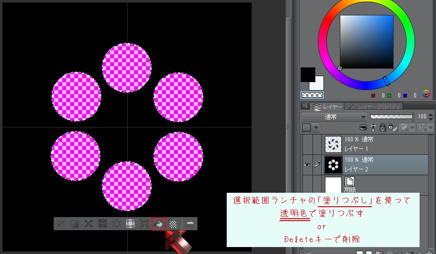 黒塗りレイヤを選択してからDeleteキーを押すか