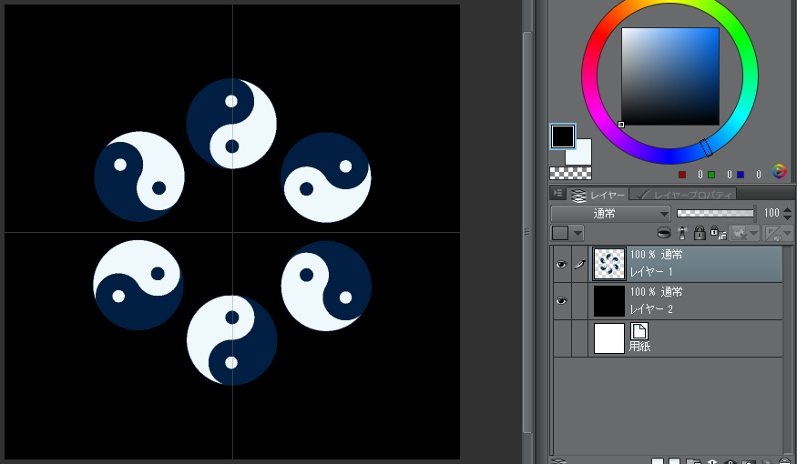 または黒塗りレイヤとは別のレイヤに描画したあとで