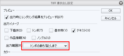 出力範囲:トンボの内側まで(裁ち落とし幅が必要な場合には、[トンボの裁ち落とし幅まで])