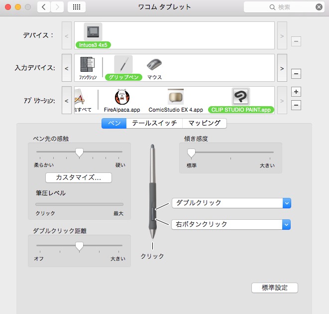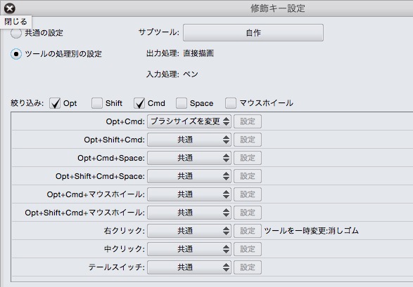 また、修飾キー設定で共通の設定の該当部分、タブレットのプロパティの