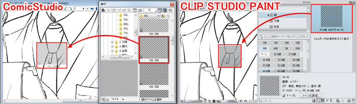 初歩的な質問になるかもしれませんが、 どう検索すれば良いかもわからず、こちらで失礼いたします。 コミスタ4.0からの乗り換えです。 トーンの貼り方の説明のサイトを見ましたが、 ![]() 右のクリスタの説明のタブには線数やパーセンテージなど、細かくタブが分かれているのに対し、 私の画面では アミ↓ ![]() 全てのトーン↓ ![]() 上記のように、とてもとても少ない数しか入っていません。少なすぎて愕然としました。 コミスタではいつも60線以外に肌には75線、服には55線・・・など 細かく貼り分けてを愛用していたので非常に不便です。 毎度選択ランチャーでトーン設定をしなければならないのでしょうか????? コミスタにしか入っていないトーンは、 新規ページに貼り付けてクリスタで素材登録して移行…という方法は見たのですが、 これから全てのトーンをそのようにしなければならないのかと思うと気が遠くなって泣きそうです。 みなさん、本当に最初はこれしか入っていないのでしょうか? タブを増やす方法、トーンの簡単な増やし方など教えていただければ幸いです。 ------------------------------------------------------------ ■バージョン: ※Windowsは、[ヘルプ]メニュー → [バージョン情報]で確認できます。 ※MacOSXは、[CLIP STUDIO PAINT]メニュー → [バージョン情報]で確認できます。 ■グレード DEBUT( ) comico( ) PRO( ) EX( ● ) Ver.1.5.6 ■OS Windows XP( ) Windows Vista( ) Windows 7 ( ) Windows 8( ) Windows 8.1( ) Windows 10( ) MacOS X 10.5( ) MacOS X 10.6( ) MacOS X 10.7( ) MacOS X 10.8( ) MacOS X 10.9( ) MacOS X 10.10( ) MacOS X 10.11( ● ) その他( ) ------------------------------------------------------------ |