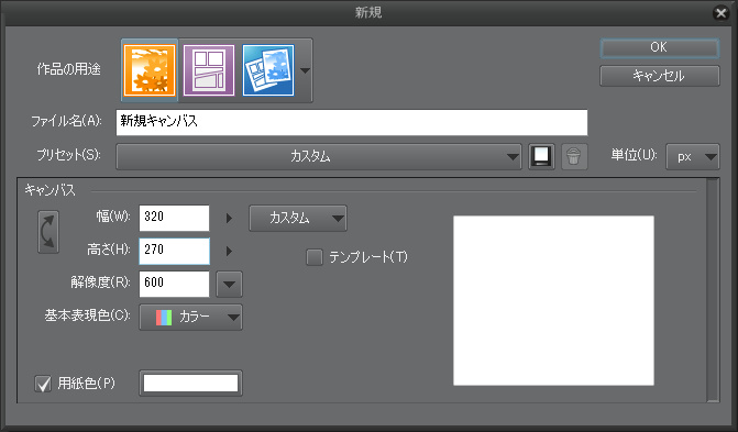 これは現在作業中のファイルのキャンバスサイズをどうにかするよりも