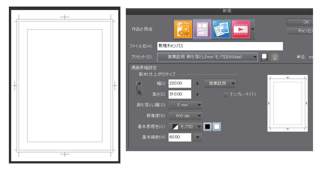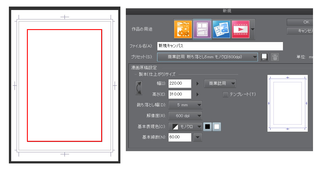 投稿用の原稿です。どう設定すればいいのかわからなくなってしまいました。 投稿先のサイズは以下の画像のとおりで、また、「上下左右に20mm以上の余白を」、とありました。 そこで、新規キャンバスで、幅180と高さ270で設定してみたのですが、(画像2枚目) 以前B4サイズのテンプレ(画像3枚目) を選択した時のキャンバスとはどこか違っていて、 この原稿指定の場合 この設定(画像2枚目)で合っているんでしょうか? また、この原稿の場合、描いていいのはこの180×270の中だけなのでしょうか? 何か設定を間違っていたら教えてほしいです。 ![]() ![]() ![]() ------------------------------------------------------------ ■バージョン: ※Windowsは、[ヘルプ]メニュー → [バージョン情報]で確認できます。 ※MacOSXは、[CLIP STUDIO PAINT]メニュー → [バージョン情報]で確認できます。 ■グレード DEBUT( ) comico( ) PRO( ○ ) EX( ) ■OS Windows XP( ) Windows Vista( ) Windows 7 ( ) Windows 8( ) Windows 8.1( ) Windows 10( ) MacOS X 10.5( ) MacOS X 10.6( ) MacOS X 10.7( ) MacOS X 10.8( ) MacOS X 10.9( ) MacOS X 10.10( ) MacOS X 10.11( ) その他( ) ------------------------------------------------------------ |
