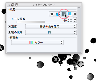 レイヤープロパティになんでもトーンにしてしまうアイコンがあります