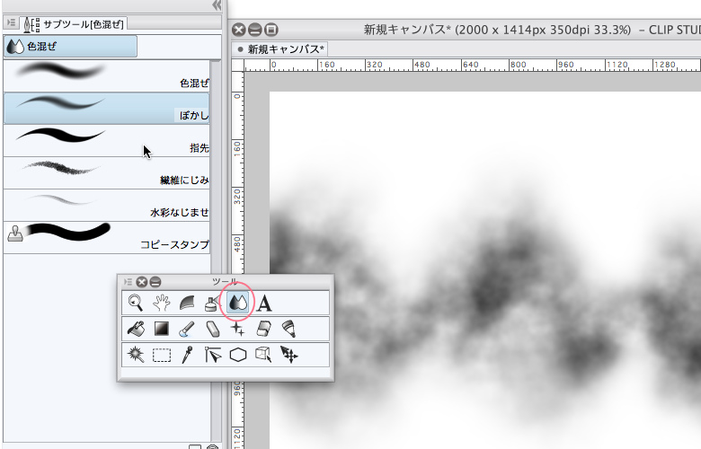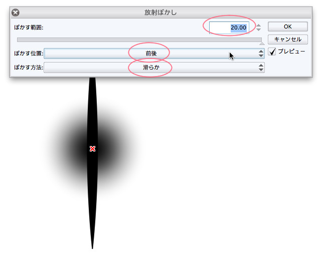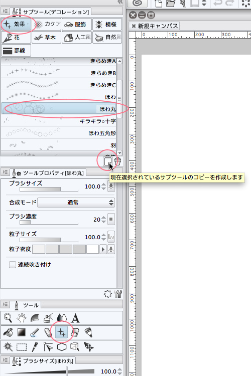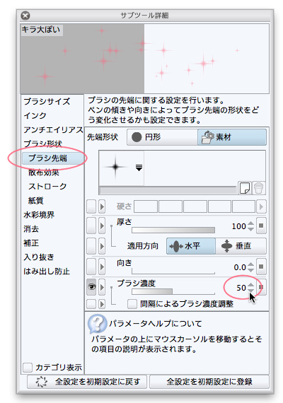 漫画の中で 天井からの強いライトを表現したいのですが デコレーションツールにある 画像素材(ブラシ先端形状)の きらめき大を 白や黒ではなく トーンのようにぼかして使うことはできるのでしょうか?