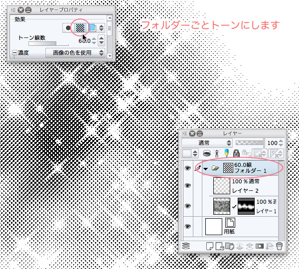 トーン線数でトーンの線数を変更できますし