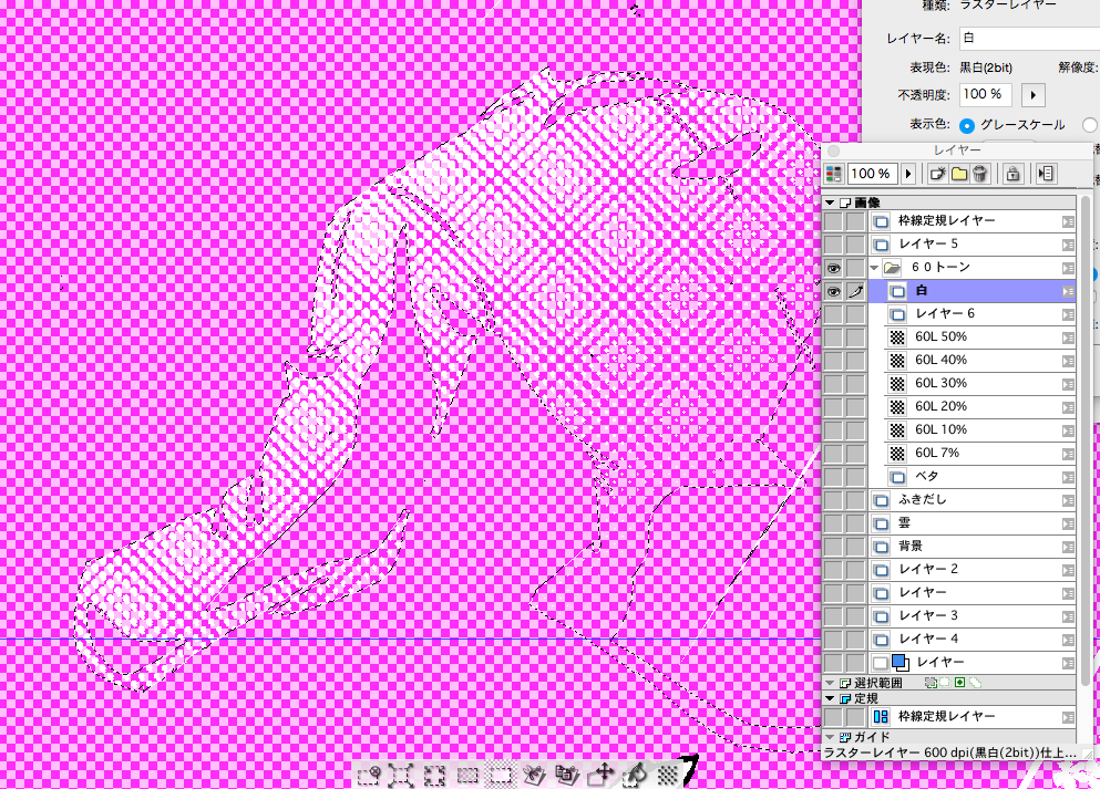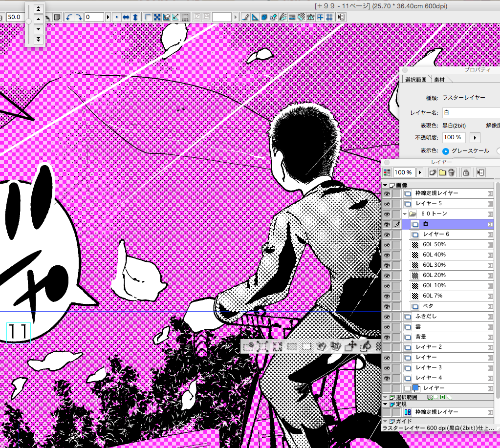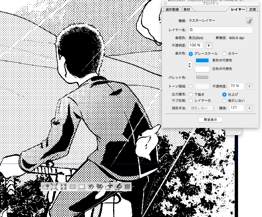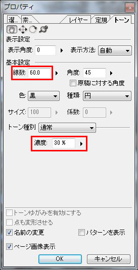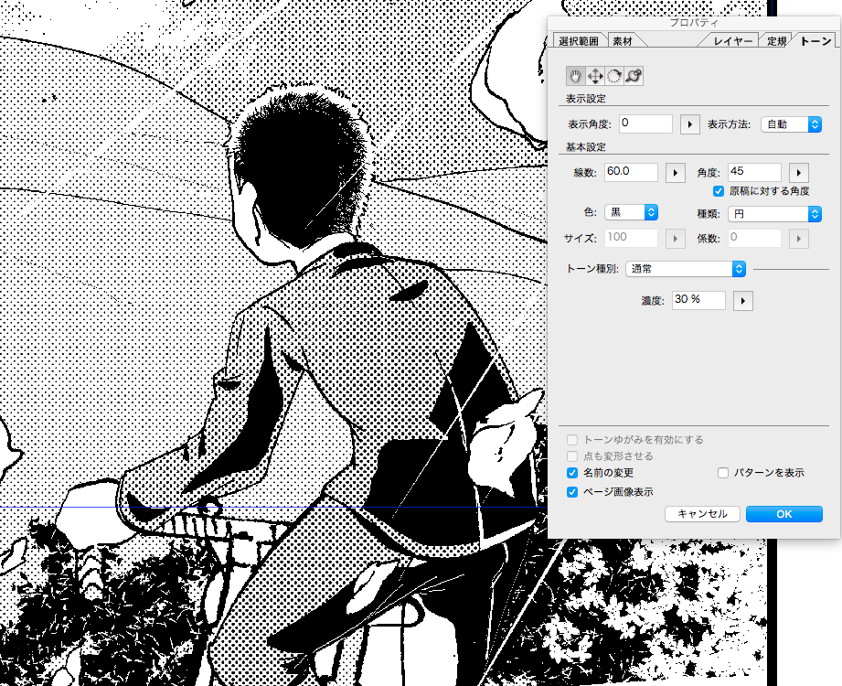 ※トーンの濃度・線数は、レイヤーパレットでトーンレイヤーの