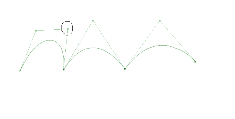 頂き、[コントロールポイント][アンカーポイント]の両方が選択された状態に