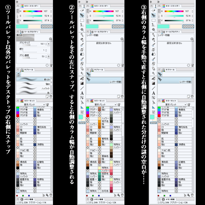 【不具合?】デスクトップにパレットをスナップさせた時の挙動 |