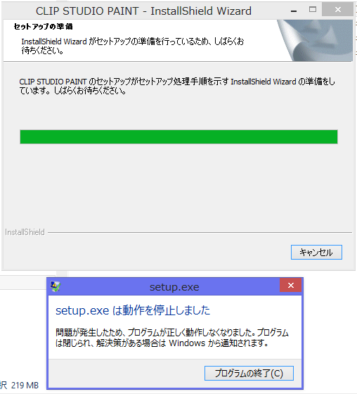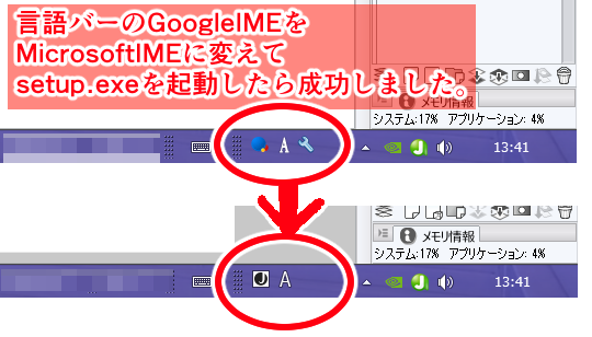 この状態でsetup.exeを起動しても同じようにエラーで終了しました。