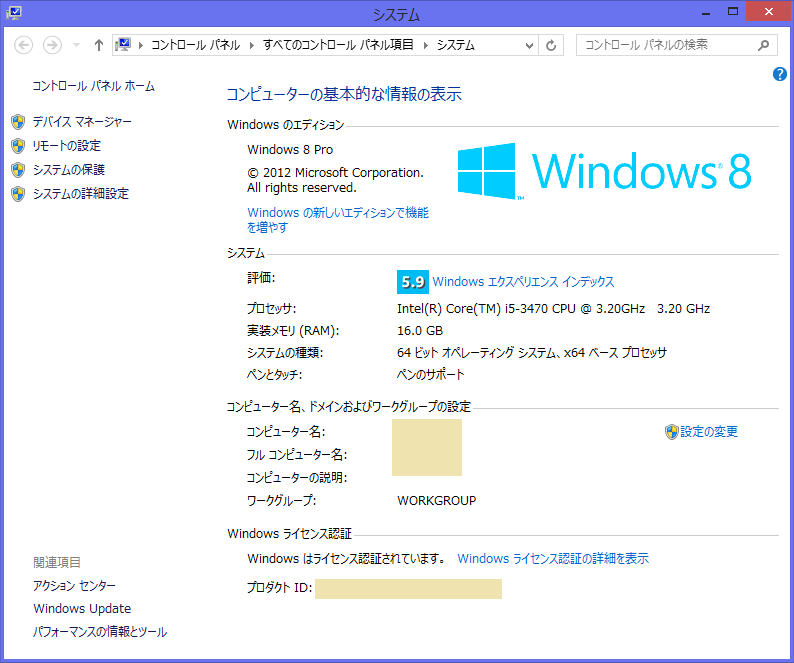 >・こちらのページをご覧いただき、「OS(Windows8)の種類」「CPU」「メモリ」「ハードディスクの空き容量」を