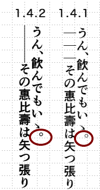 Mac版1.4.2・OS X Yosemiteにて、1.4.1と1.4.2の縦書きテキストレイヤー表示結果をお伝えします。