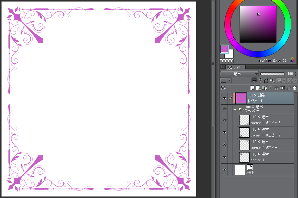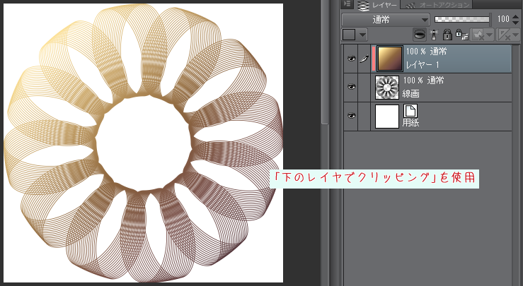 2・レイヤーを追加して下のレイヤーでクリッピングを使い色を変える。