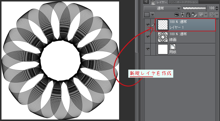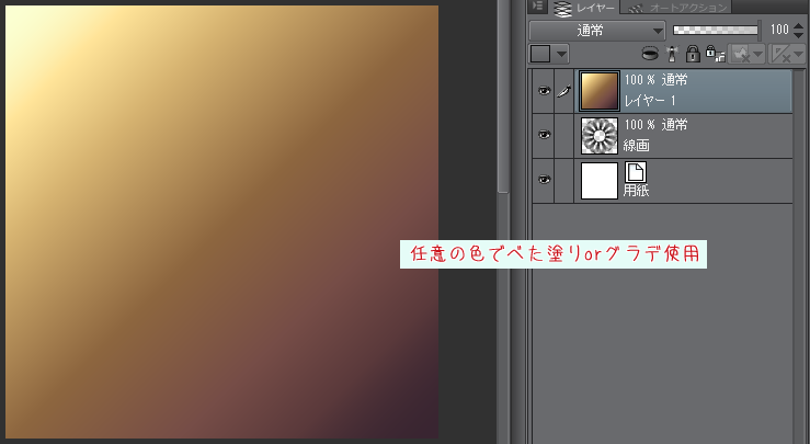 1・透明ピクセルをロックして線画を好きな色で塗りつぶす。