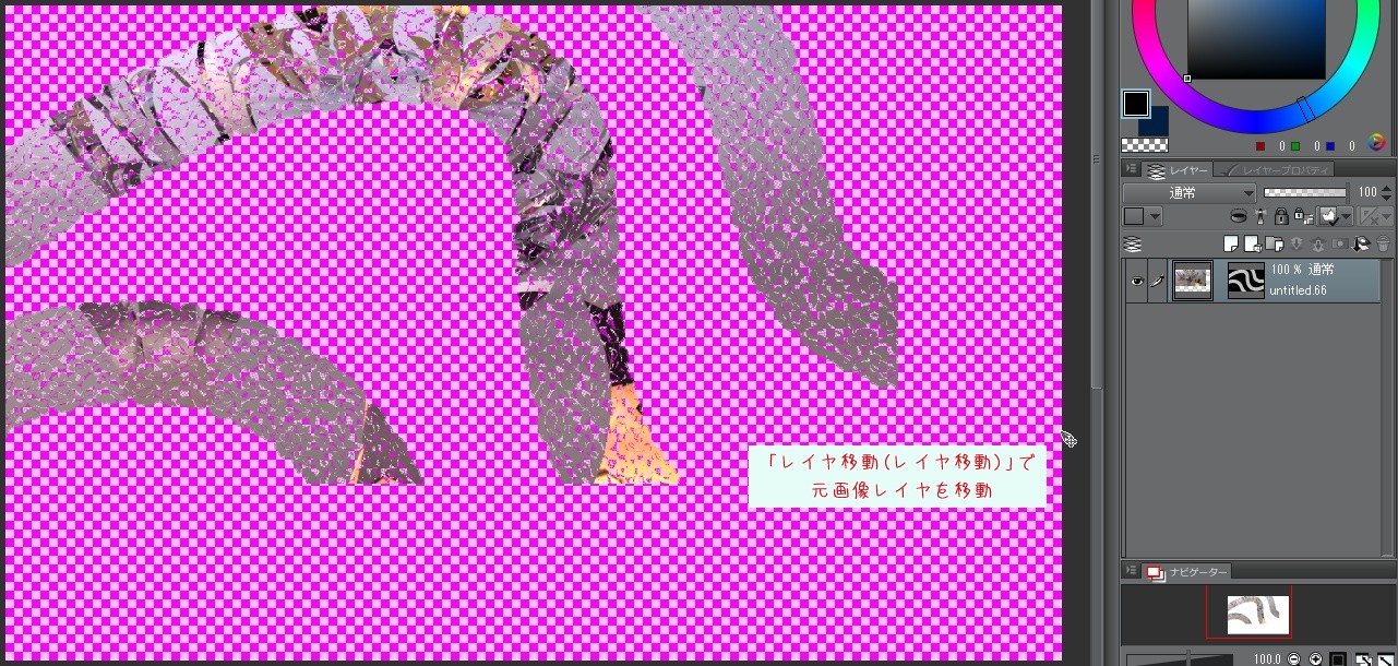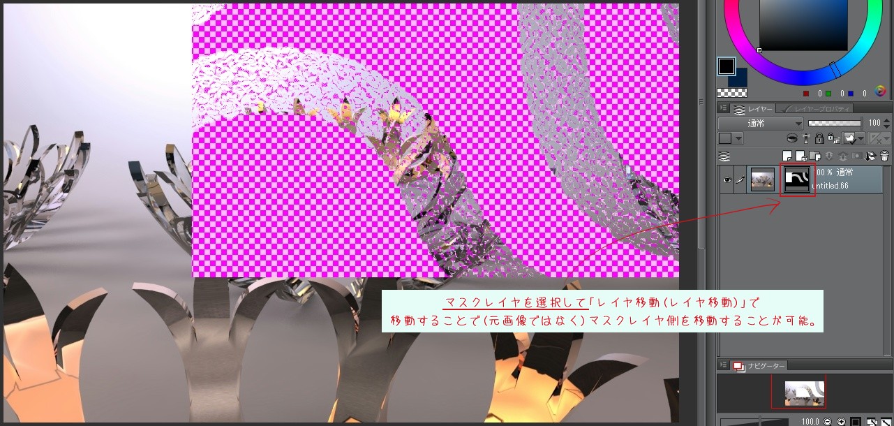 レイヤー移動の時マスクはそのままにしてマスク下の絵だけ動かしたい |