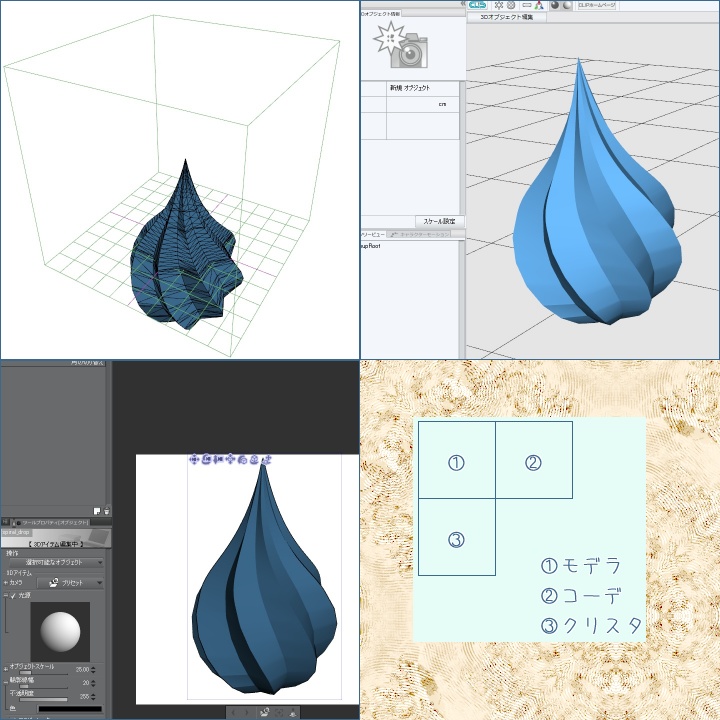 早速DLして試してみましたが、以下のようにクリスタ(paint)、モデラ、コーデともに