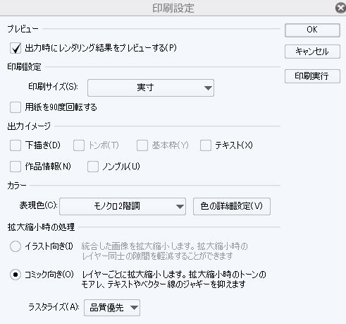 [出力時にレンダリング結果をプレビューする]にチェックを入れ、[印刷実行]ボタンを