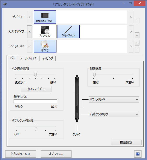グリップペンの設定で、ダブルクリックを無効にしましたところ