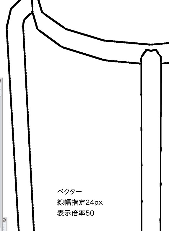 線幅指定:600dpi環境下で1.0mm(24~26px)でも同様の荒れがでます。