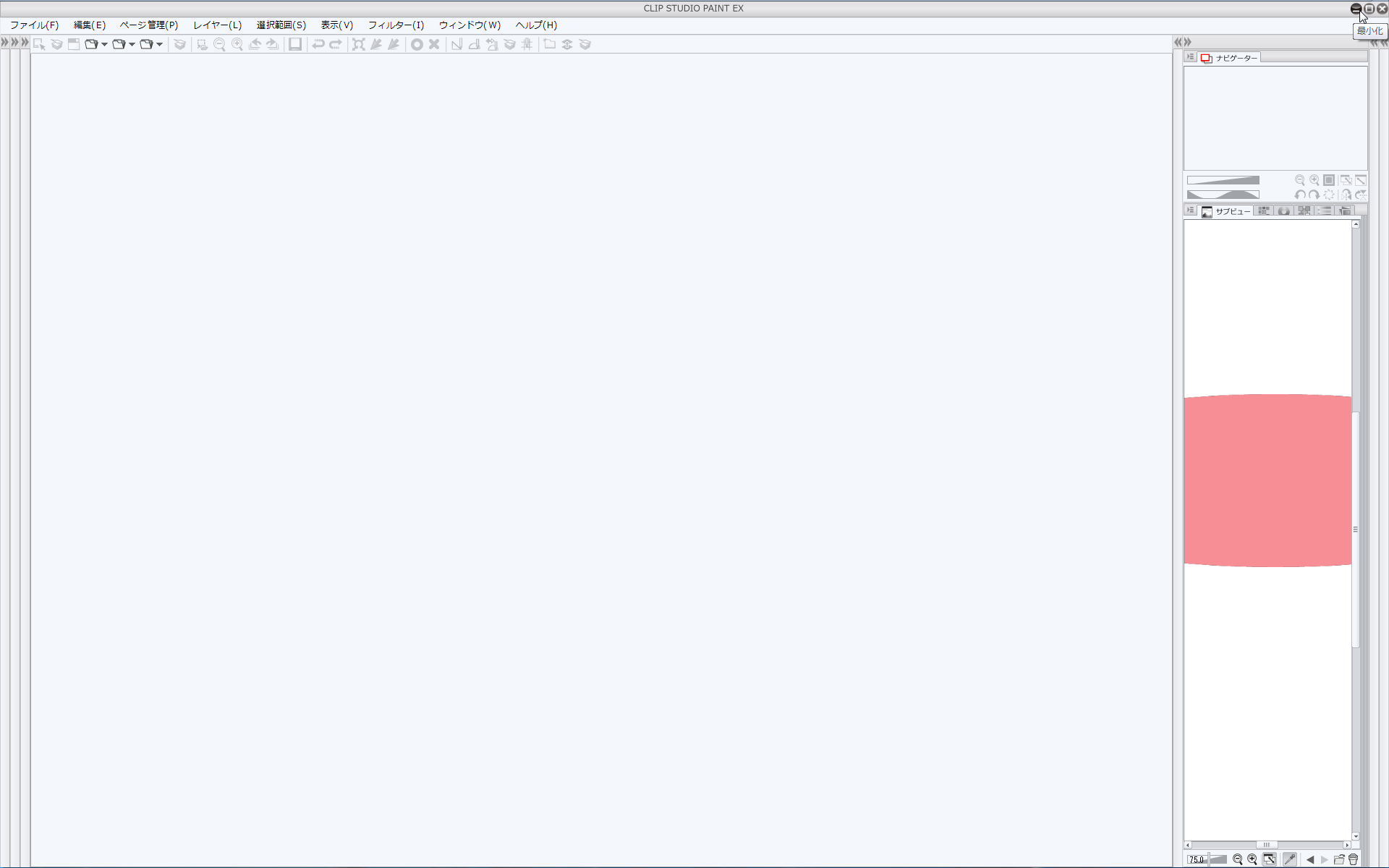 また、メインウインドウの最小化の方法についてはCLIP STUDIO PAINTの画面を
